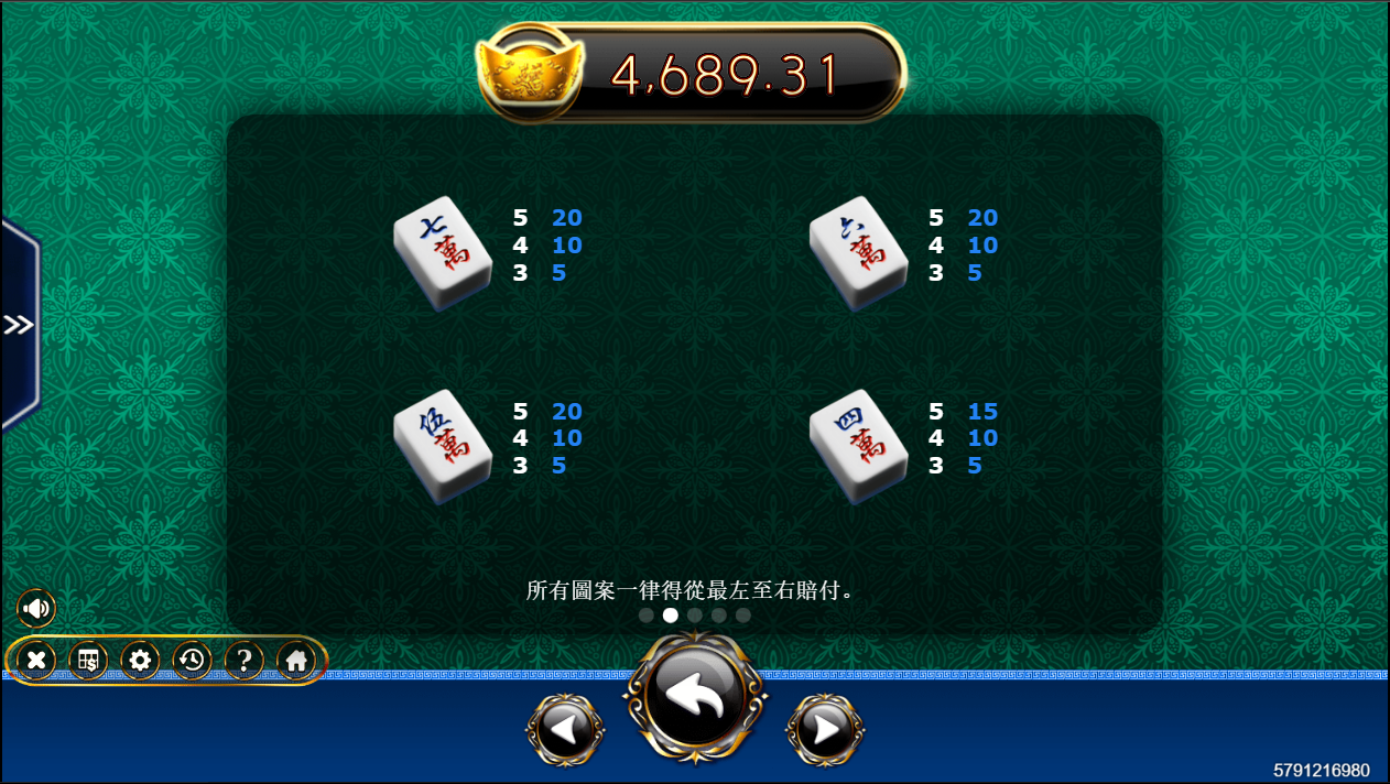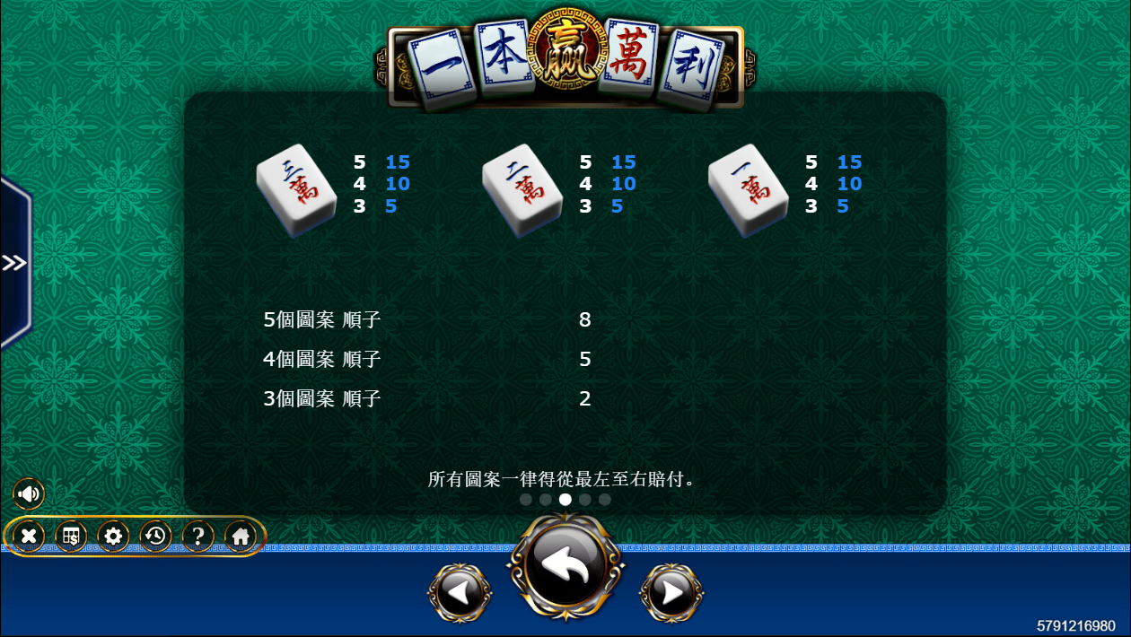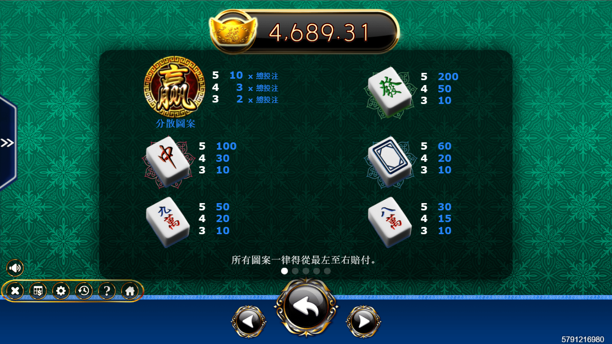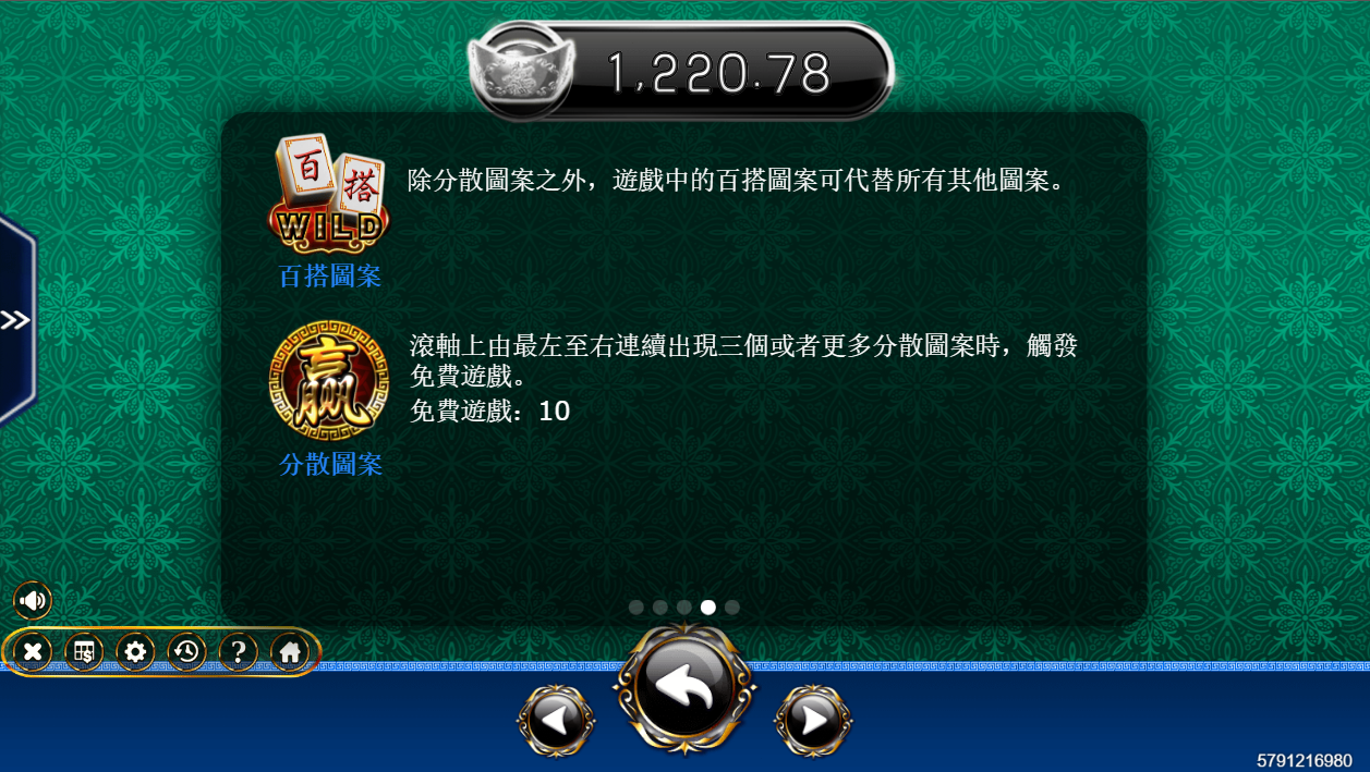 *獎金方式:連線交叉獎勵、相同圖示消除、全場倍數加總相乘、免費旋轉