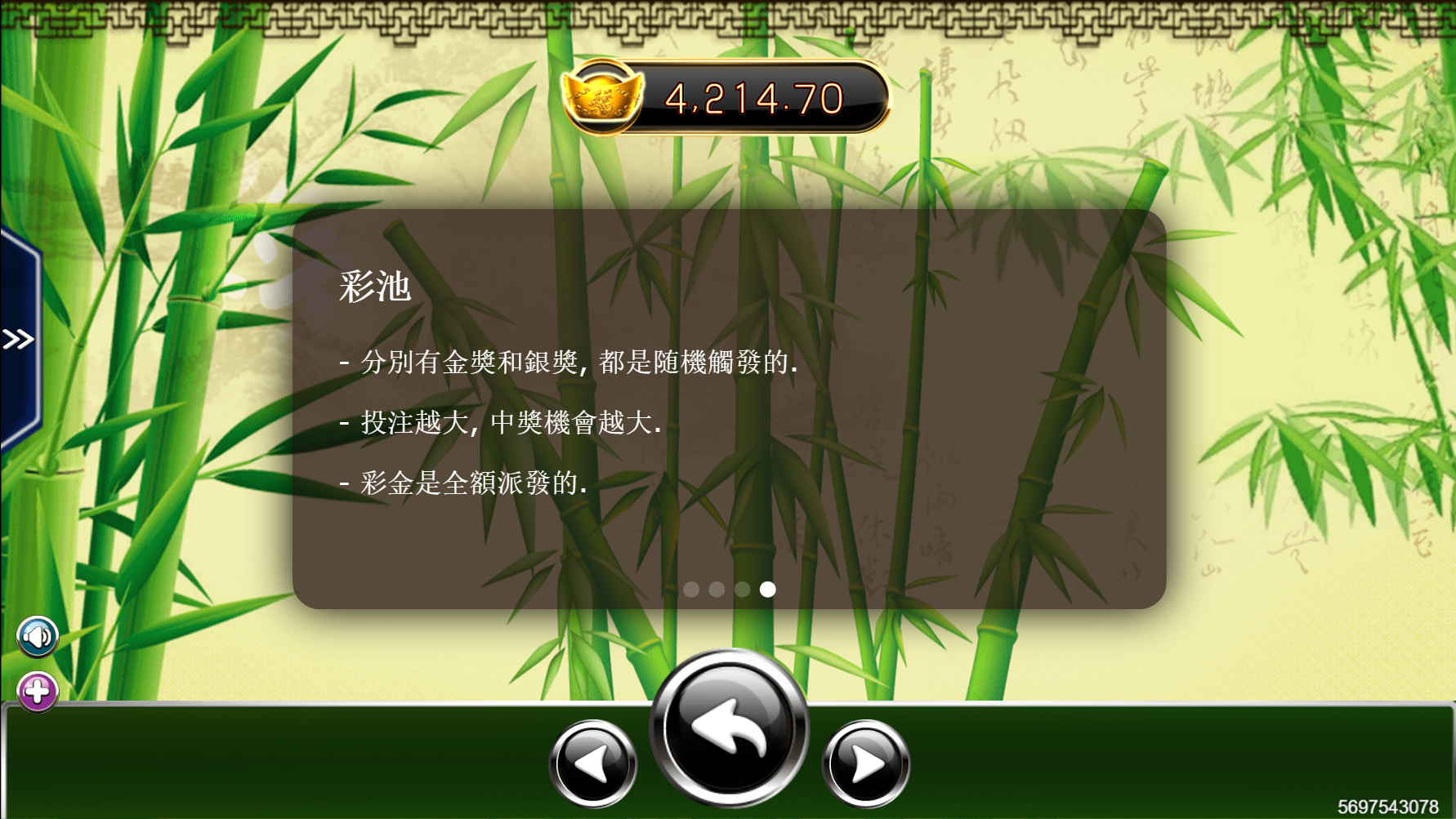 最大倍數為2500;如出現故障,所以賠付和遊戲都視為無效。分別有金獎和銀獎,都是隨機觸發的,投注金額越大,中獎機會越大,彩金都是全額派發的。
