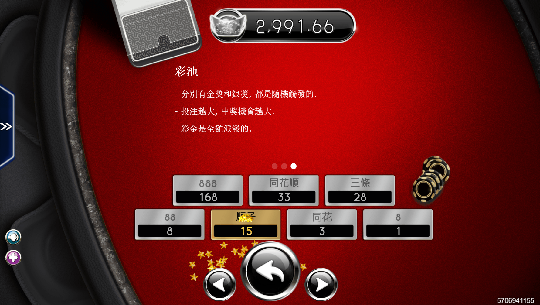 如出現故障,所有賠付和遊戲都視為無效;分別有金獎和銀獎,都是隨機觸發的,投注金額越大,中獎機會越大,彩金都是全額派發的。