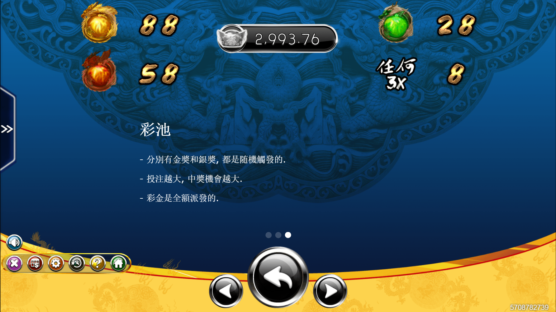 *獎金方式:連線交叉獎勵、相同圖示消除、全場倍數加總相乘